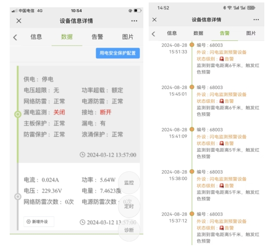 3、辉和设备状态管理平台,具有有效防御物理感应雷的功能,探测到感觉雷时客户可根据设置情况自动切断电源或手动切断电源。